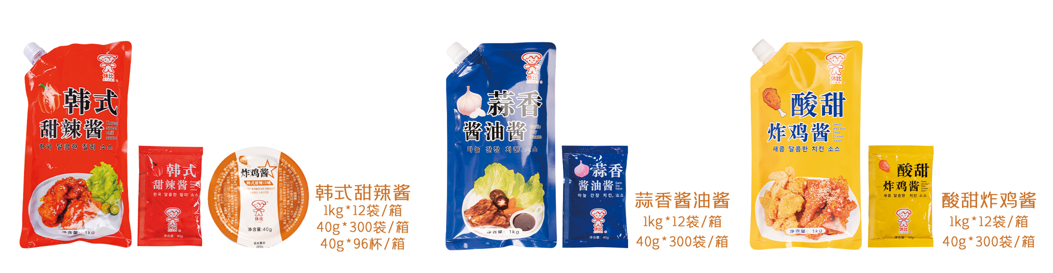 休比韩式炸鸡酱是一种结合了酸、甜、辣等多种口味的独特调味料,它的独特之处在于平衡了各种风味,让人在品尝时既能感受到浓郁的酱香,又能享受到微妙的口感变化。这种酱料的制作过程繁复,需要选用上等的原料,并经过精心的配比和才能达到最佳口感。为了丰富国人的口味,休比开发了:爆火的蜂蜜芥末酱、芝士味浓的奶香芝士酱、口感层次丰富的韩式甜辣酱、韩式麻辣酱、蒜香酱香完美结合的蒜香酱油酱、经典泡菜味的韩式香辣酱、梅子味突出酸甜炸鸡酱等炸鸡酱。韩式炸鸡酱系列不仅仅可以用来做韩式炸鸡,其在韩式烤肉、石锅拌饭、炒年糕等韩式料理上均可应用。